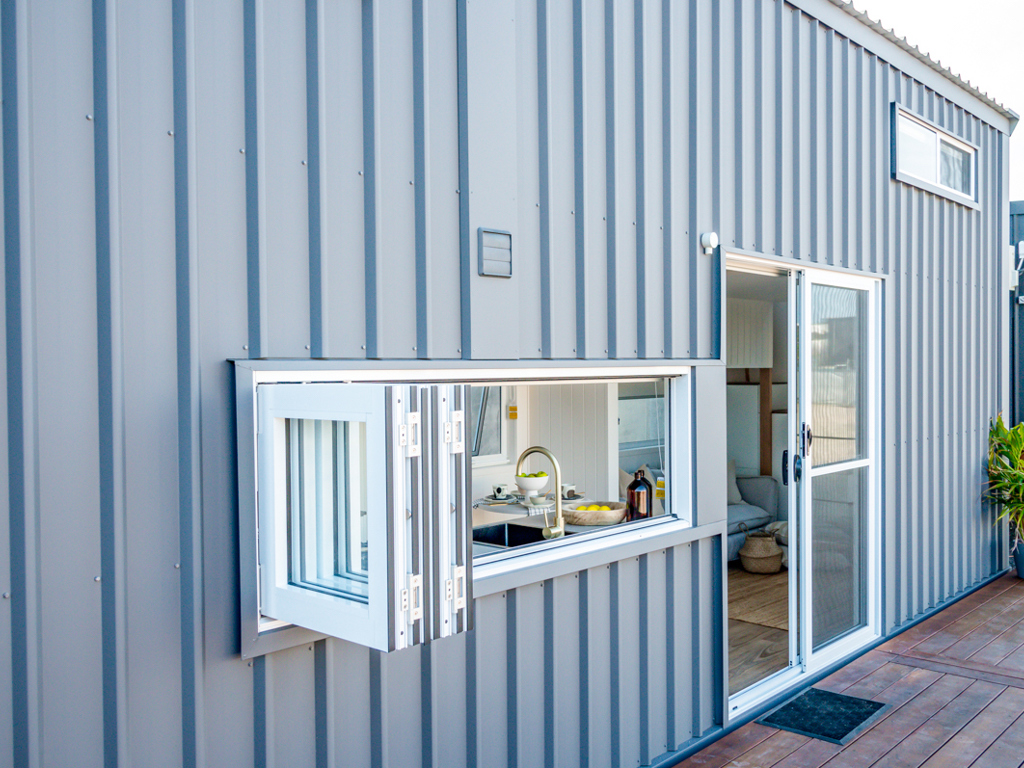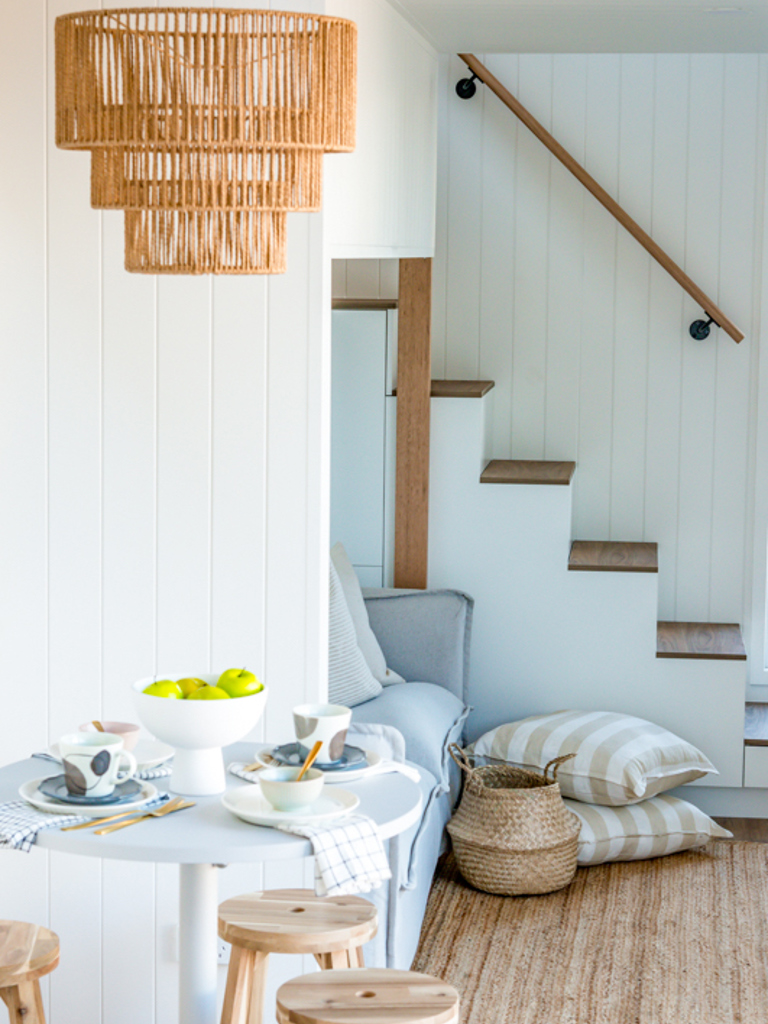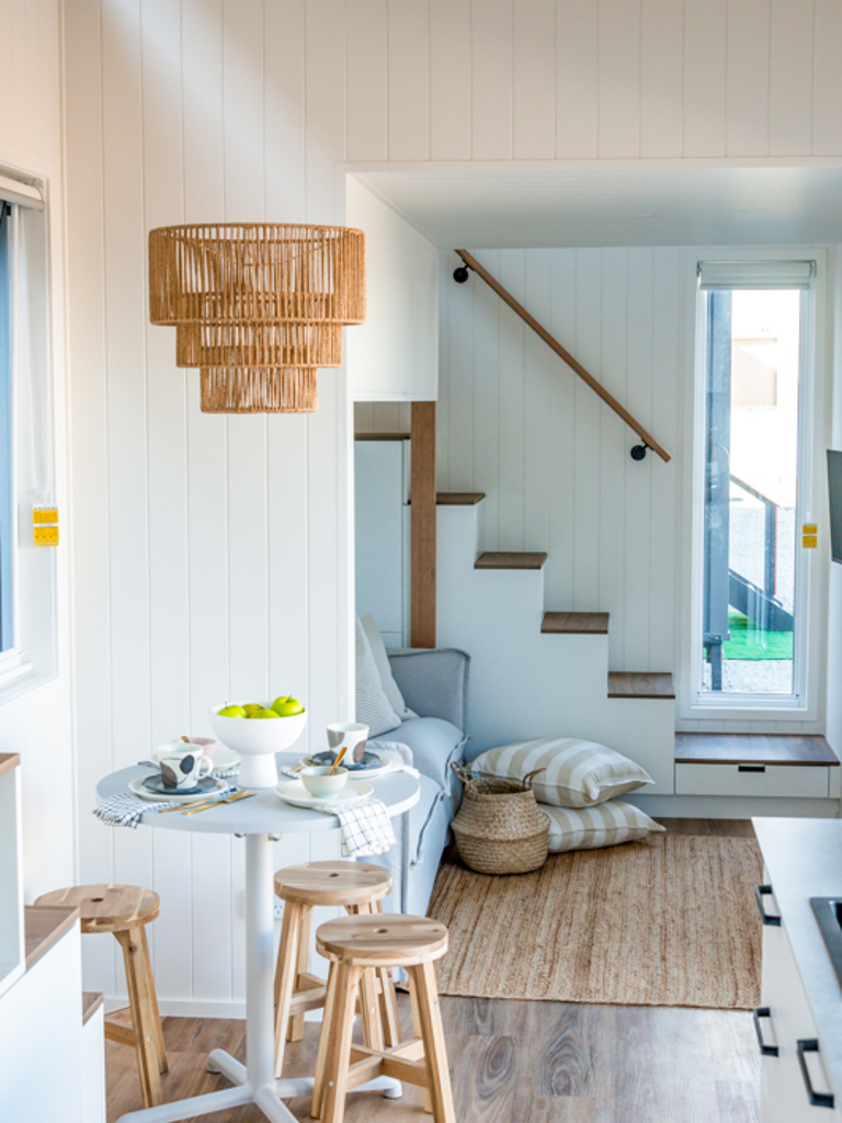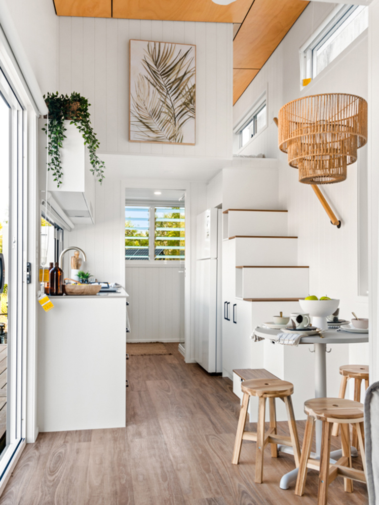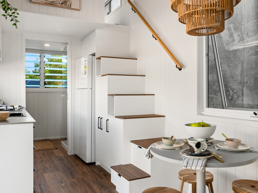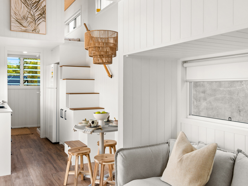 With the dual lofts, standing landing, 2 storage stairs - no ladders and separate lounge and dining zones, the Yaroomba 8.4 is the ultimate in family friendly tiny house living.