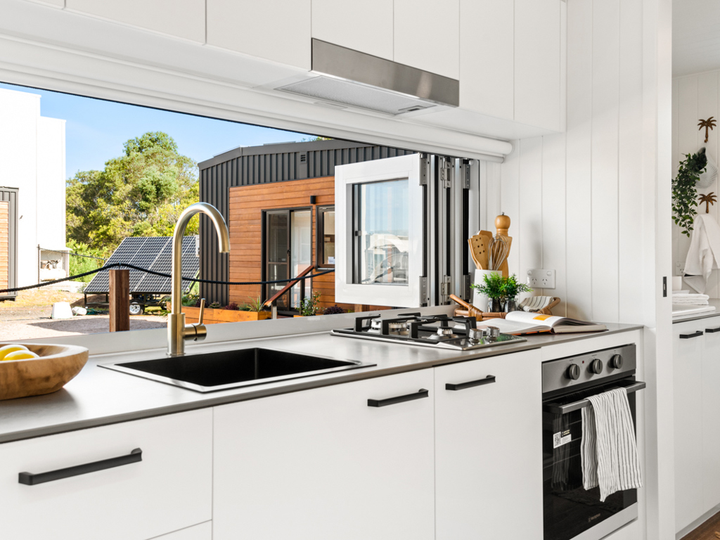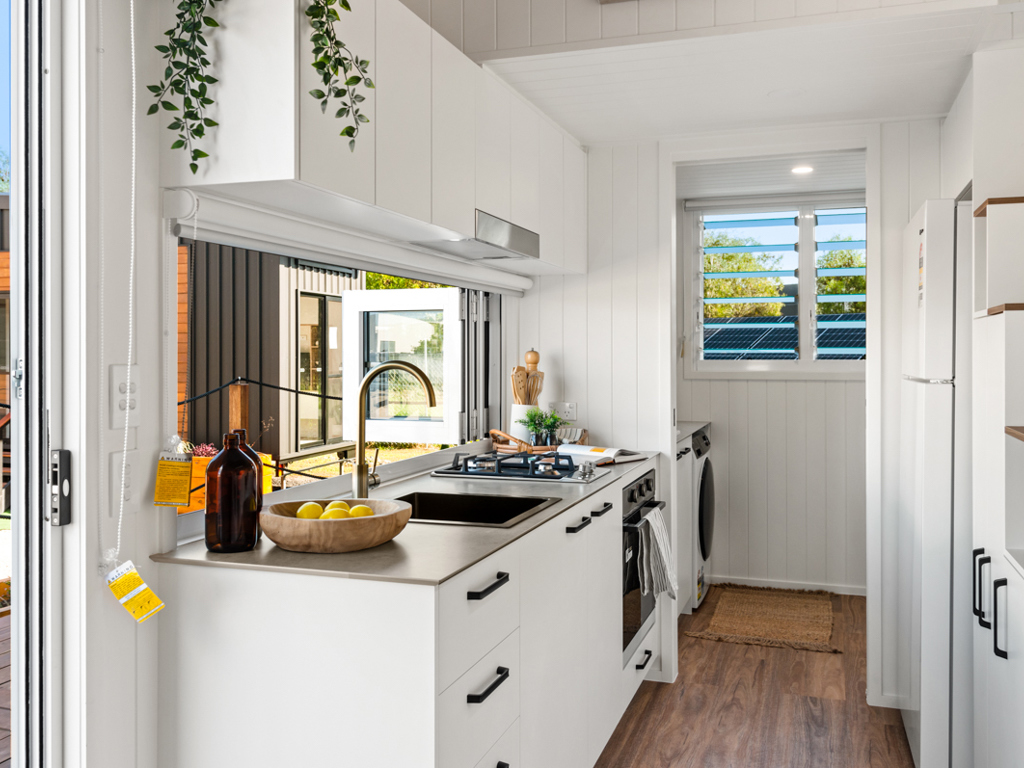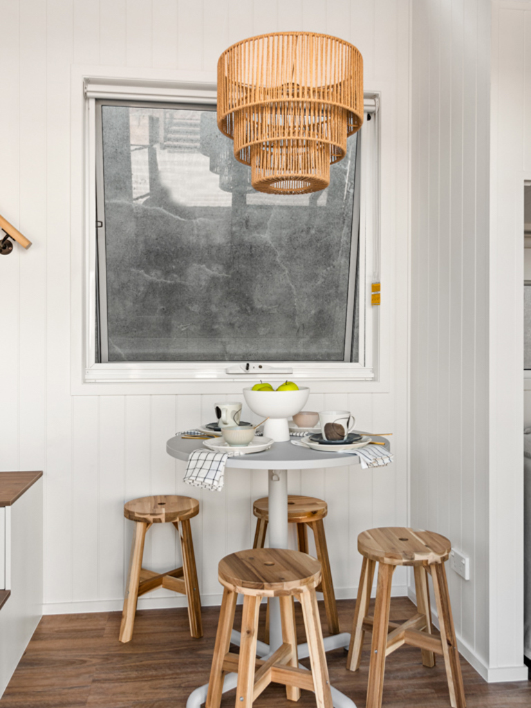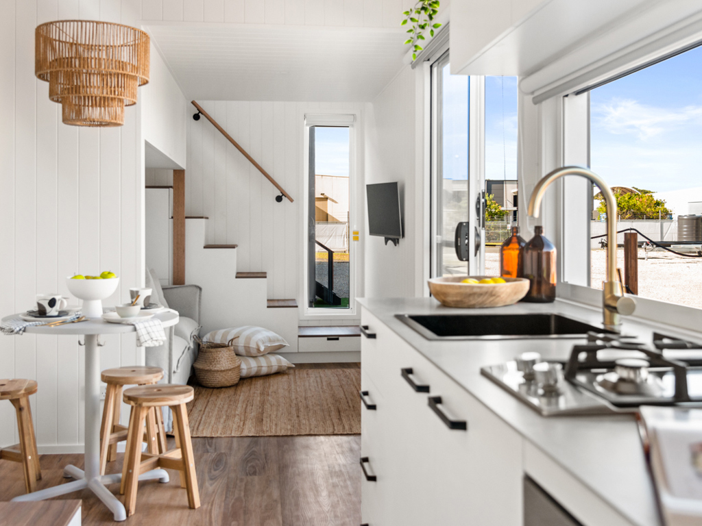 It's the living space where this tiny home excels. With a dedicated lounge/TV zone ideal for movie lovers and a separate dining area for eating or homework, everyone has their own space in this family tiny.