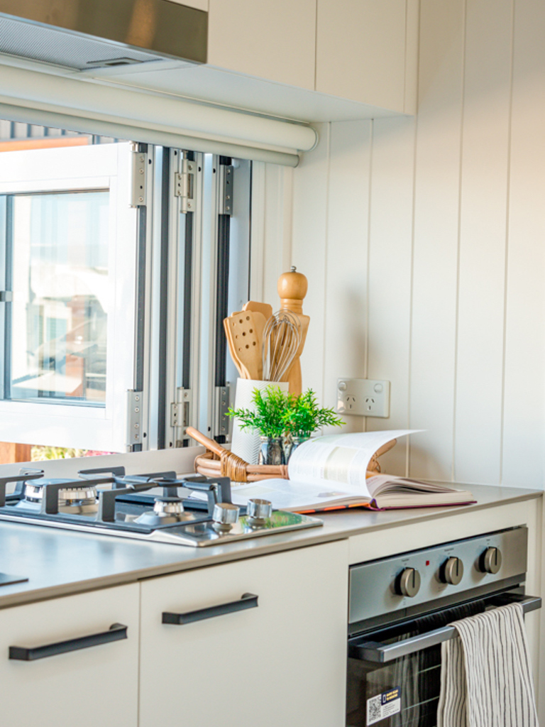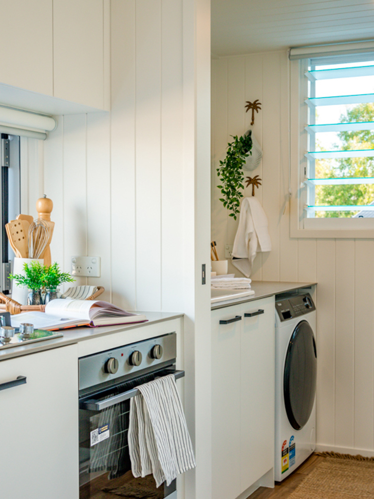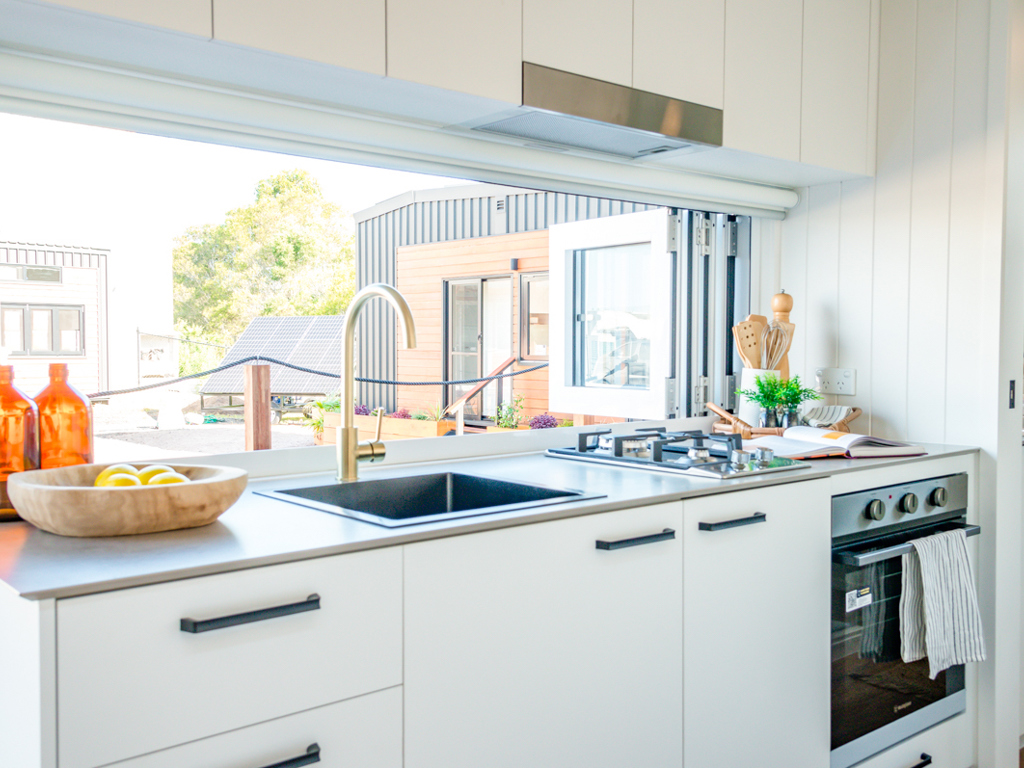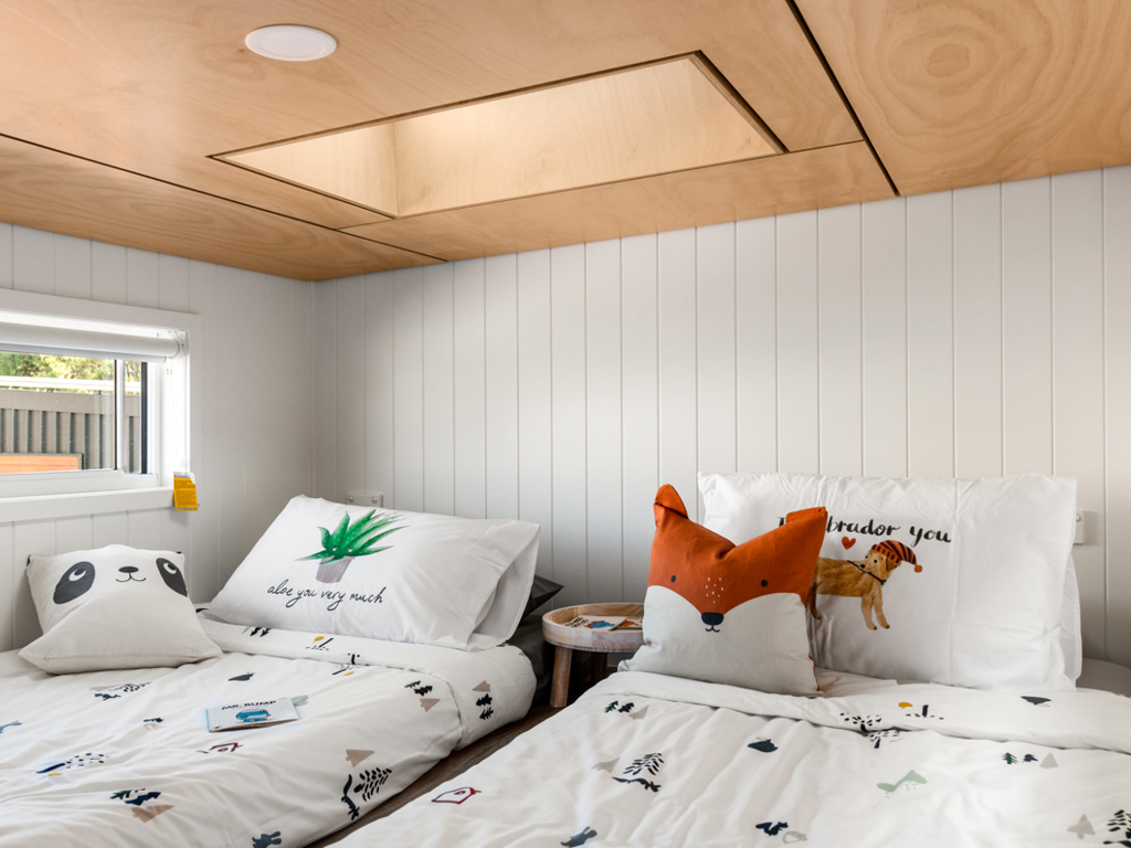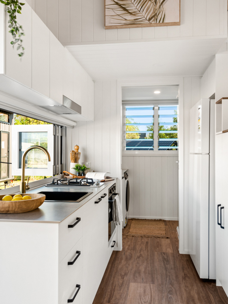 It's the living space where this tiny home excels. With a dedicated lounge/TV zone ideal for movie lovers and a separate dining area for eating or homework, everyone has their own space in this family tiny.